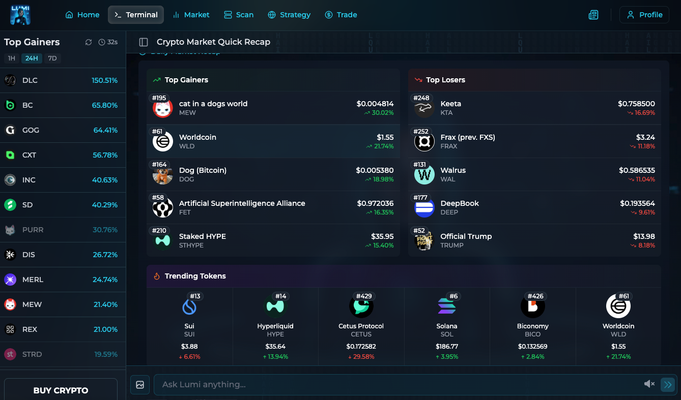 LUMI Terminal combines advanced trading tools with AI-powered insights to give you the edge in crypto markets.